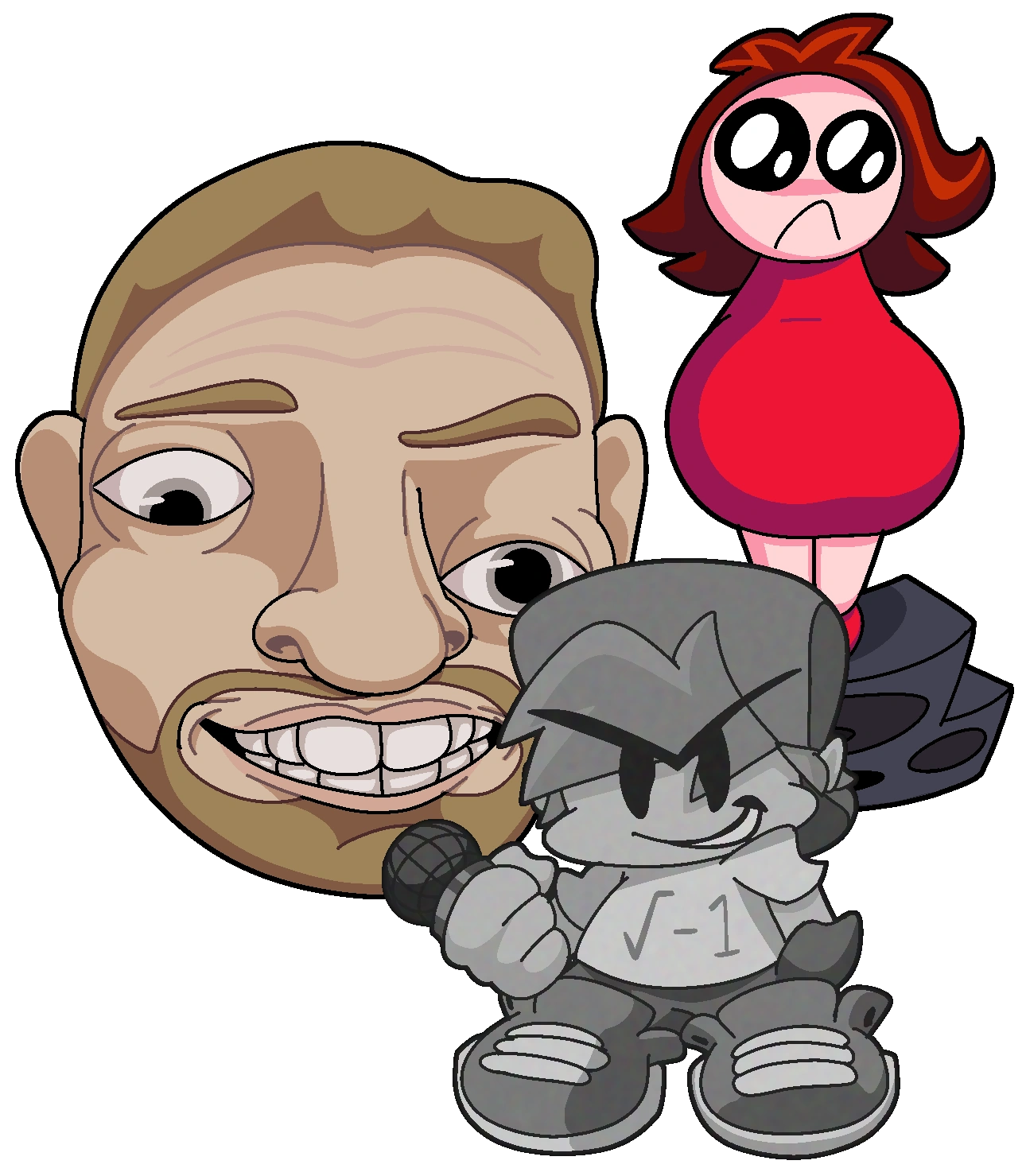 Fred appears in the mod as a disembodied, cropped head taken from the "It's Hackin' Christmas With Fred" album cover. In his poses, he moves in a grotesque manner, shifting his eyes and jaw into inhuman positions.