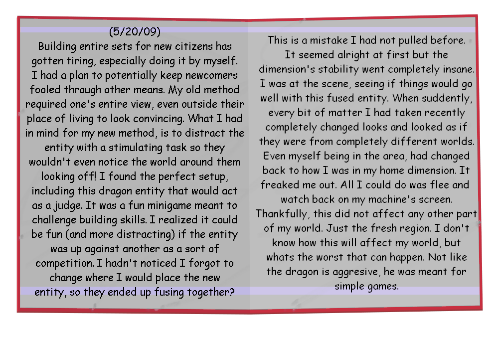 - In the background sprites for Judge Dragon, a cropped Mine-imator watermark can be seen in the corner of the island during the first section and a cropped version of the shark-like structure can be seen on the sprite for the bushes in the perspective section. Neither of these are visible in-game, however.