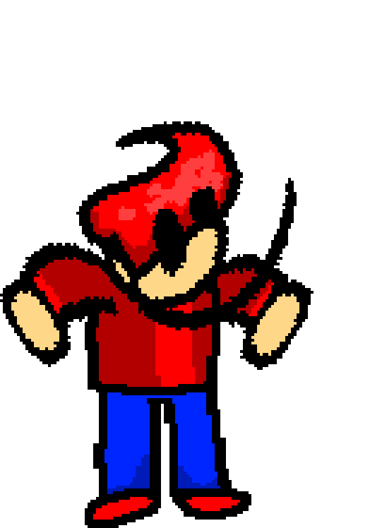 Billbert appears as a tall, crudely drawn human with beige skin, red hair, two large black eyes that change in size, often with one being bigger than the other, a large, curved line for a mouth, a red shirt, and blue jeans with red shoes. Prior to 3.0.0.0, he gained a black tophat after asking the sprite artist to put a "Freddy Fazbear hat" on his sprite.
