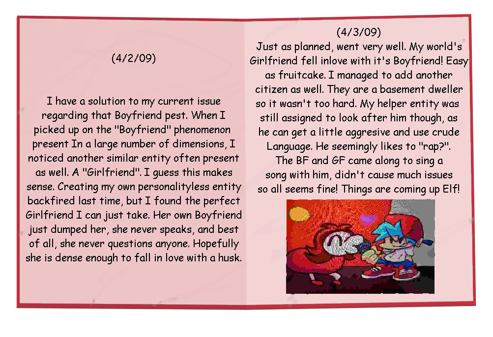 - Existing in the files is a blank spritesheet for a character known as "Mark". This spritesheet is loaded in-game in Girlfriend's position, used to negate the need for any character to take her place. The original purpose of Mark is still left unknown.