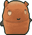 The Trap is an orange bear-like object. Its face consists of two small eyes and a small curved line, potentially acting as a mouth and/or nose. On the sides of its body are what appear to be two small purple arms. Its upper and lower torso are split into two individual parts, allowing it to "trap" anyone inside.