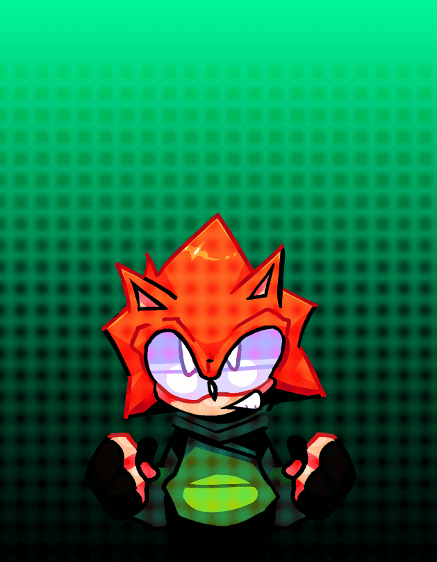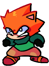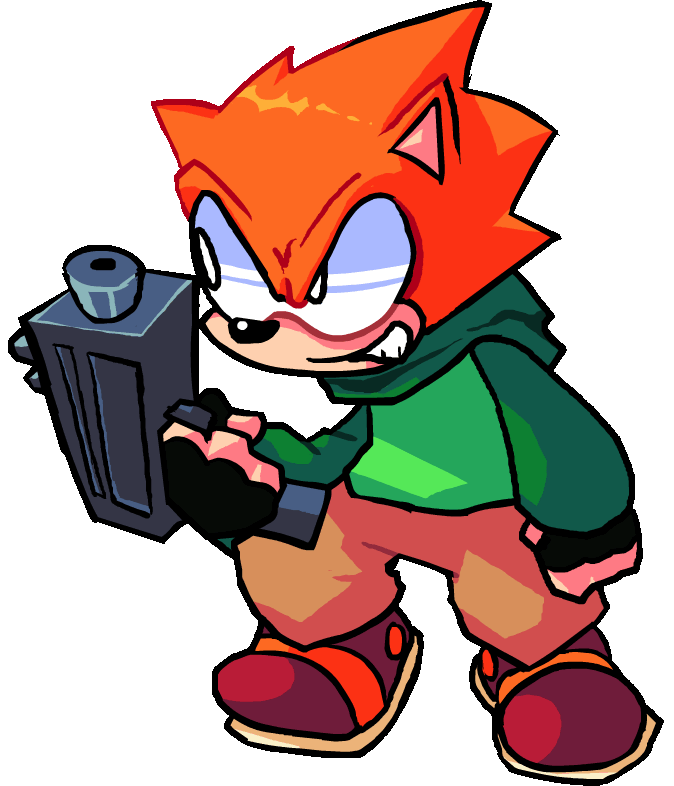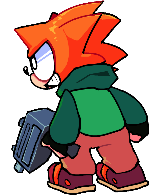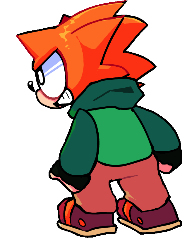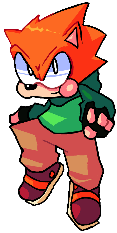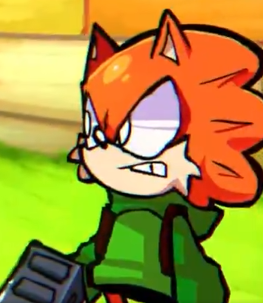 Pico, now named Picopine, is turned into a Mobian, more specifically a porcupine-like Mobian. He is ginger orange like his hair. He wears the same color of clothes except it’s now a jacket instead of a shirt, and has black fingerless gloves.