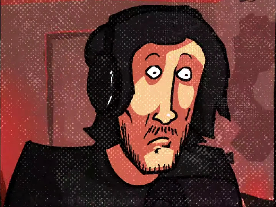 The transformation into his true form begins early in the song, as DX’s eyes cloud up with a colony of red eyes lacking pupils. He gains monstrous yellow teeth as he sings.
