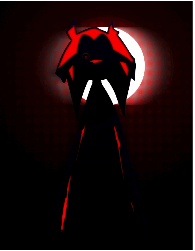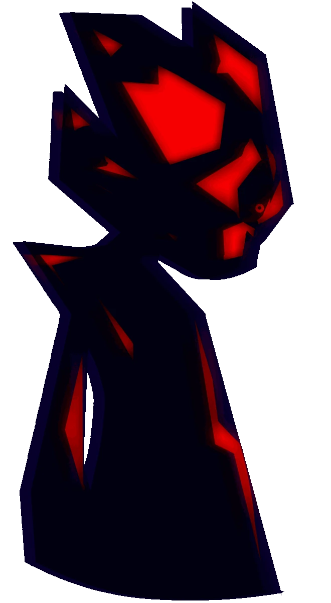 The transformation culminates when DX becomes a humongous red creature just vaguely representing Sonic at all. His body is harshly shaded with black and a single eye peers out of his head, making Picopine look very small in comparison.