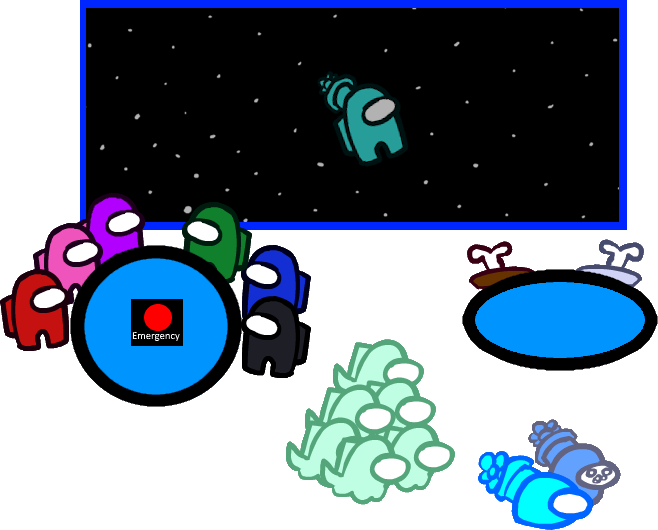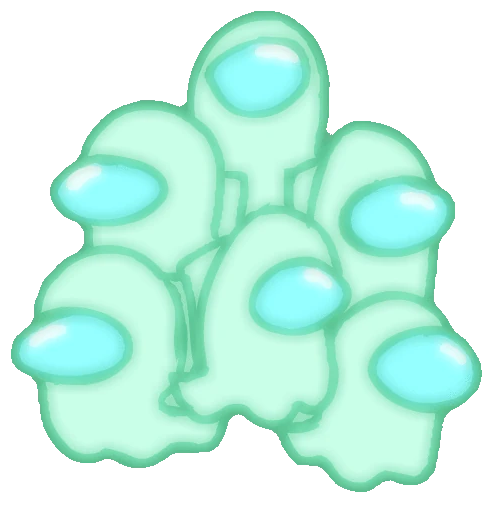 The Ghost Crewmates appear as 6 tightly clumped ghosts of crewmates, each having a ghostly white ectoplasmic body and no legs, instead ending in a ghostly tail. Some of them also appear separate and instead laugh at Cyan fr being ejected.