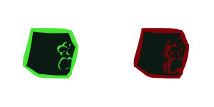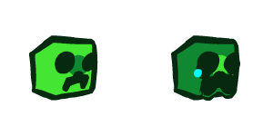 DX!Creeper appears as a normal creeper, having its 4 stubby legs, black eyes and frowned mouth, and flashing white as if exploding though it doesn't. In his glitchy form, he appears charged with blue lightning surrounding him, with red dots inside his eyes and mouth. In his true form, he is seen taller and with a darker tone, keeping the red dots and glitches in his poses.