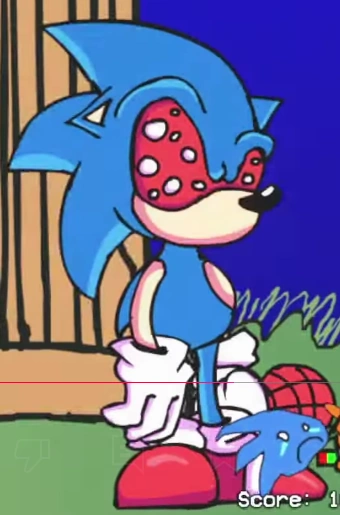 DX at first appears being disguised as Sonic, possessing the same features overall aside from a lack of mouth.