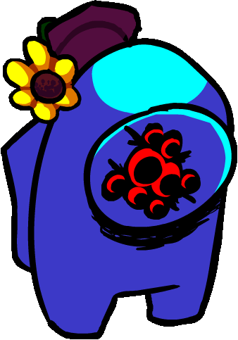 The Cyan Impostor is an alien disguised as a bean-sharped cyan astronaut with a flower case on its top and multiples red eyes in its visor, which start to appear later on in his song. In the meetup section, he appears as a moving PNG of his in-game appearance.