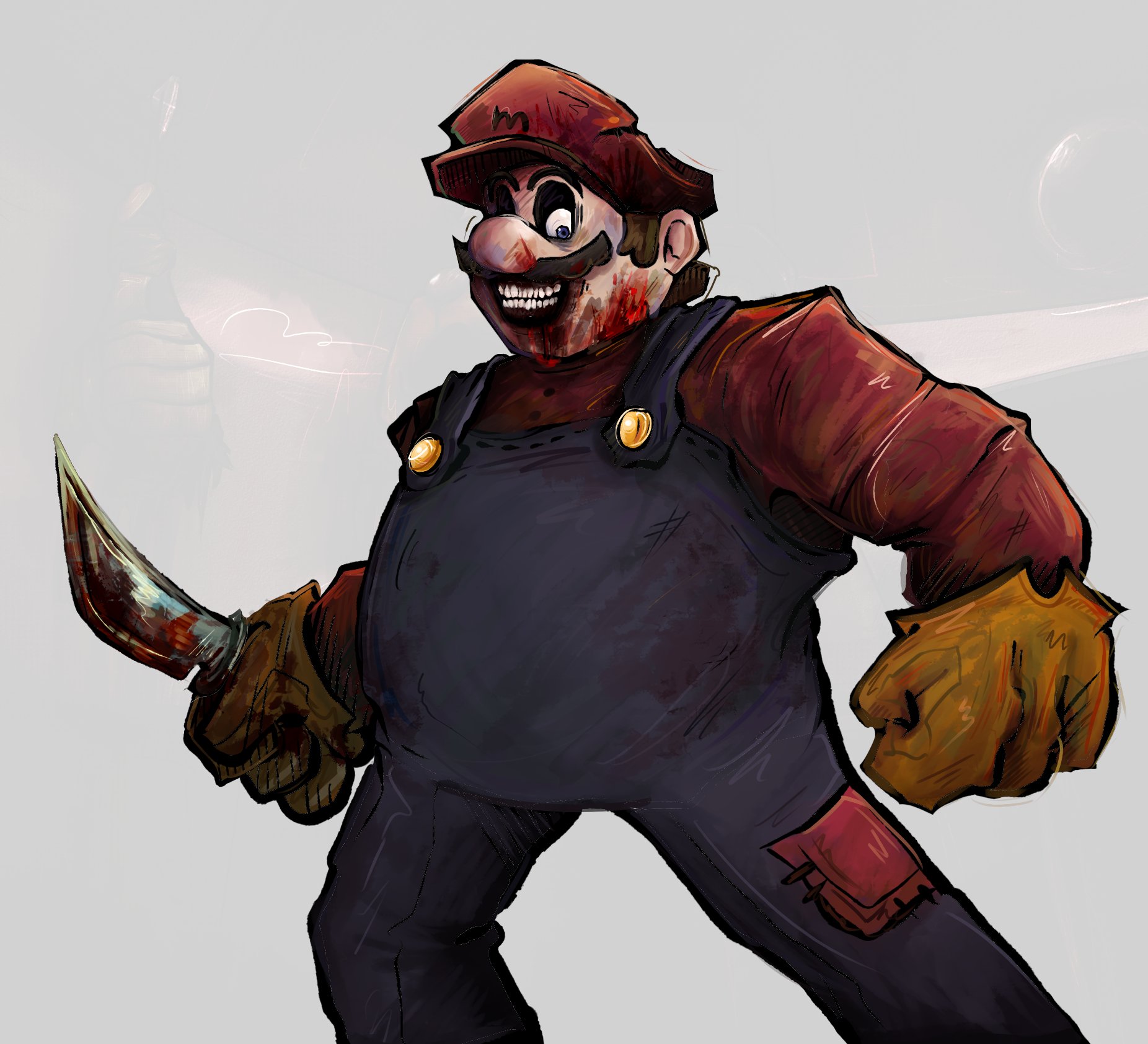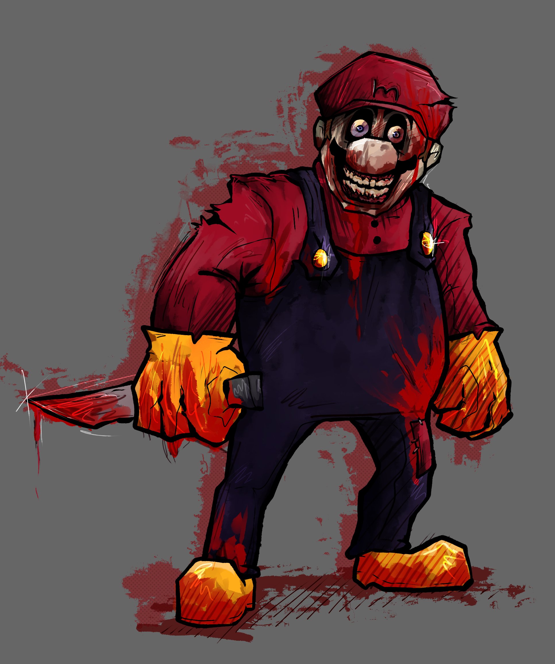 Super Horror Mario, or simply Horror Mario, also known by many nicknames, is an upcoming opponent to the mod. He originates from an art piece on DeviantArt made by Shadow-Shana.