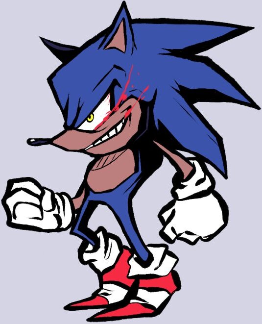 Sonic.EXE/2X13 is an upcoming opponent who originally featured in his debuting creepypasta in 2011, along with a duology indie game. In this mod, he will feature in a remix of Too Slow and You Can't Run. It is unknown whether there will be a Triple Trouble remix, as there may be a chance there won't be one unless confirmed by the developers.