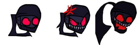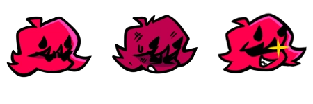 In Lockjaw, she activates her demonic powers and grabs Boyfriend's microphone, while putting on a more feral angry expression with her hands clasped. Her skin turns a light shade of lavender, two black horns appear on her forehead, and her eyes reveal flashing red and white star-shaped pupils. Sometimes the upper part of her face darkens, showing only her pupils.