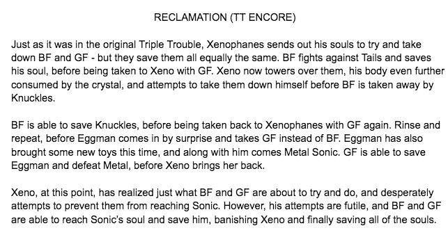 Friday Night Funkin EXEternal was a semi-official revival of Vs. Sonic.Exe directed by Neutroa. The mod was originally created by Mistress Macabre as her own vision of what the original mod could have been. The mod would have featured many of the original characters and songs, along with some new faces.