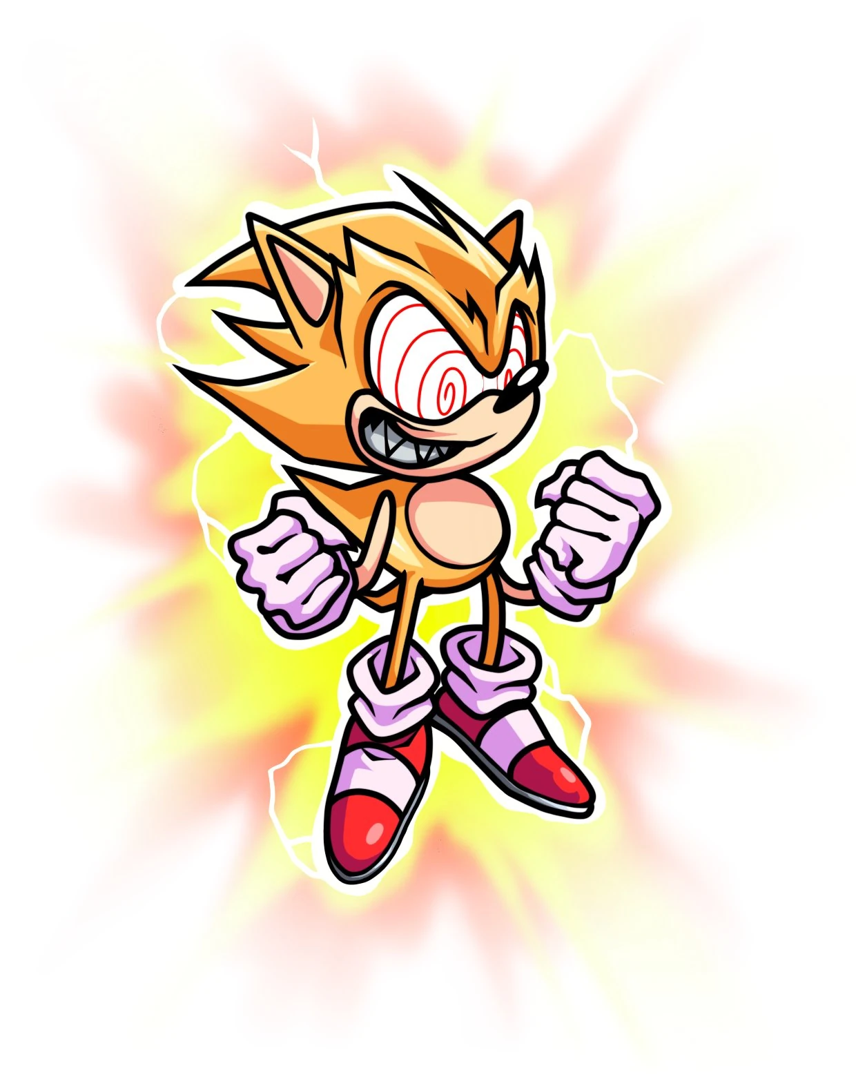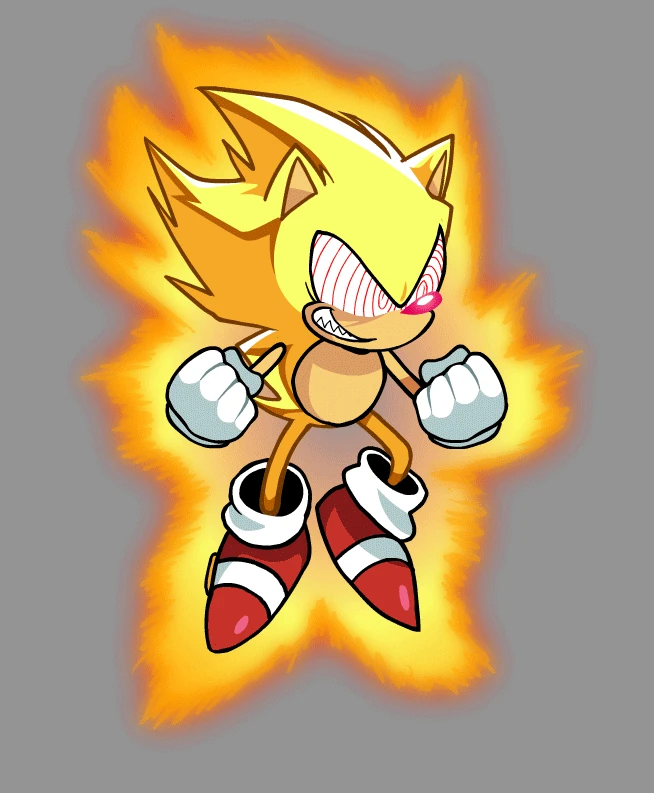 This particular depiction of Super Sonic is a distinct entity from his base-form counterpart. When the latter is exposed to chaos energy or put under extreme stress, the former manifests. Unlike his mainstream counterpart, he is violent, blood hungry, and enjoys killing innocent people. He was going to be a playable against Fatal Error in a song and the opponent in the mod in the songs Chaos, Heroes and Villians, and Running Wild.