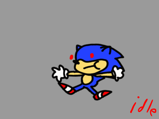 He also had a design for Gotta Go, where assumingly, he appears from the Sonic logo with his finger out with an expression of manic glee. He appeared pixelated and had red gloves, dark blue fur, orange skin, and yellowed teeth.