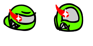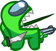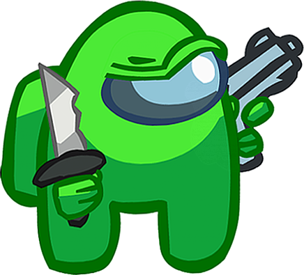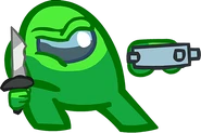 Erick looks like any Among Us character wearing the lime color, except that he carries a gun and a knife, this because he is the impostor.