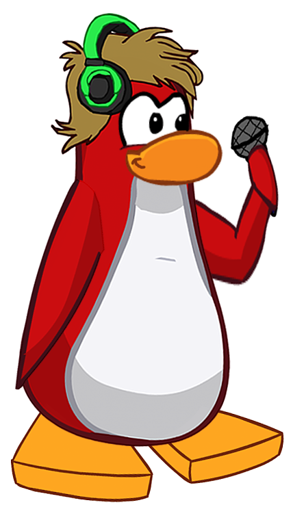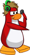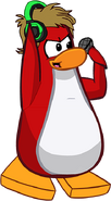 Pingu is a red penguin, who is drawn in the same style of the Club Penguin characters (Mostly the redesigns from 2013). He has light brown hair and wears green headphones.