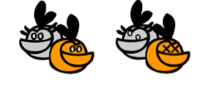 Bubbles is orange with a yellow beak, a couple of dark purple rings surrounding his eyes, and a belly of the same color; Foam on the other hand, is light gray, with a dark gray beak, green rings surrounding her eyes and a dark red belly.