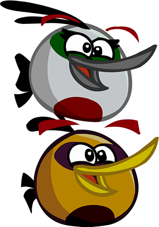 Bubbles is one of the characters from Rovio Entertainment's game "Angry Birds", while Foam is a fanmade OC made by the main dev of the mod. They take the place of Skid and Pump