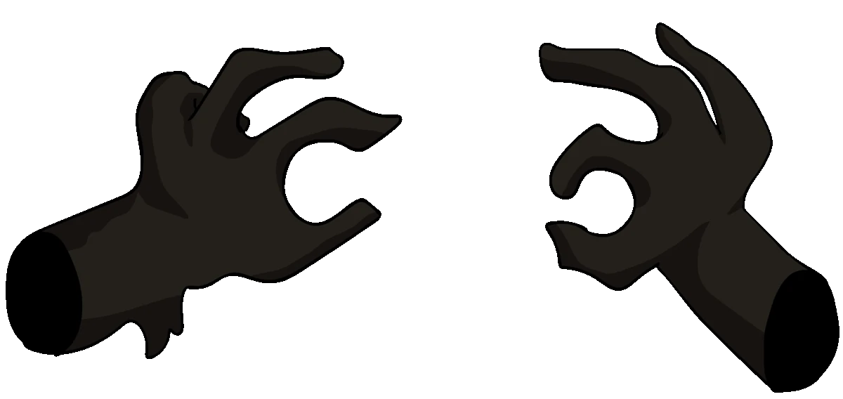 There are 2 forms that Sin takes as. 1 one of them is a humanoid form, appearing as a mostly black and slender demonic creature with his mouth hidden and eyes wide open. His expression changes depending on the note hit, such as a wide grin in his down pose, a forced gaping mouth in his up pose, and a split mouth in his right pose.