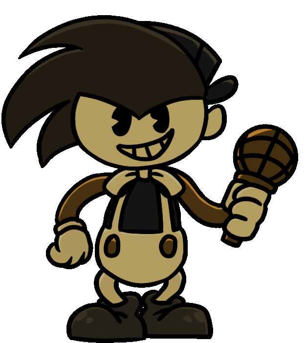 Boyfriend isn't directly seen for the majority of the mod given how all songs take on a unique perspective, with the exception of Sepia where his appearance is shown. He is put in the style of Bendy with his color washed to that of the Sepia filter, wearing a dark cap and iconic bowtie, dark torso and light overalls with moderate buttons, sleeves of the same color and light gloves, and dark shoes.