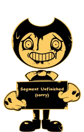 The real appearance and name of the Wanderer of Sin in unknown due to the incompleteness of the character's addition assumed the file name, and sign that states to be an unfinished segment. The placeholder appears as the original cardboard cutout Bendy with frightened eyes that move as well as sign that says Segment unfinished (sorry). Meanwhile, their icon appears entirely different, much like a head with it's mouth gaping wide open with no signs of teeth or eyes, along with the texture of static.