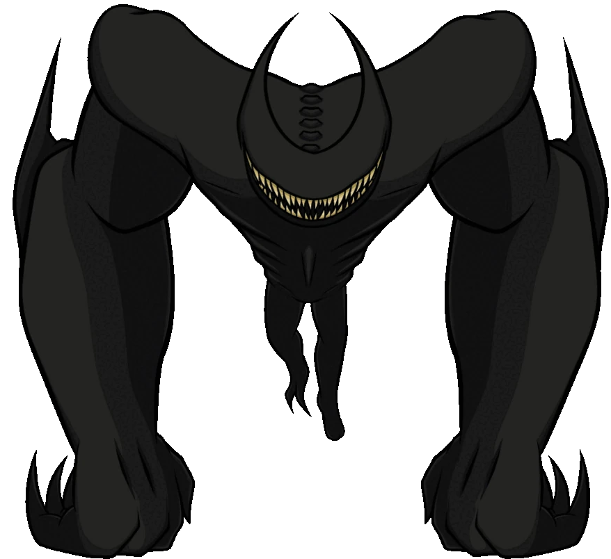 On to the 3rd segment is his final phase, transforming into Beast Bendy. His teeth sharpen and none of the other features appear to exist. He has tiny legs, large arms, and a bulky body, standing on 4s. His body is entirely covered in ink.