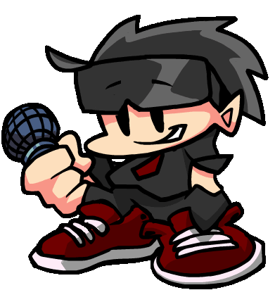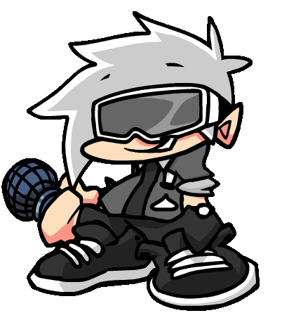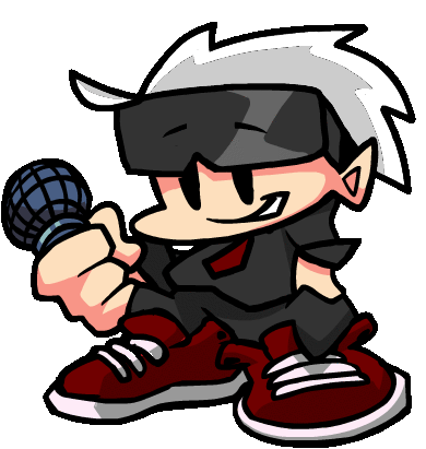 During Week 4, he wears a dark grey shirt with rolled-up sleeves, a crimson tie, crimson sneakers with white shoelaces, and black goggles. When he hits a note, an outline appears around him that matches the color of the note hit.
