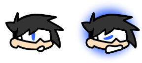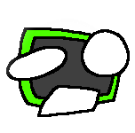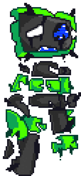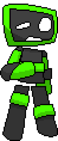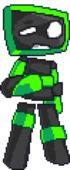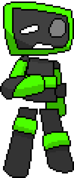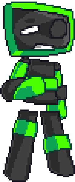 Glitch is a humanoid similar in appearance to a robot. His limbs are simple black and green rectangles, and are suspended in mid-air away from each other. His head resembles a green computer monitor with a black screen. On his head are three white shapes that resemble a pair of eyes and mouth, which change color when Glitch hits a note.