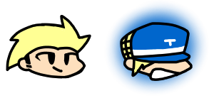 Manager.exe is a light-skinned man with blond hair. He wears a dark blue apron with a nameplate, a light blue dress shirt with a black tie, black pants, and blue shoes with white laces. During some of his animations a blue and white cap is pulled over his eyes, and he recieves a color-changing outline similar to Salty in Week 4. According to Tsuraran, a blue magic silly straw is suspending his microphone in mid-air.