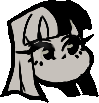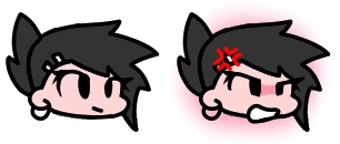 In her unused design, unlike the current design, her eyes are down, and the shape of her bangs is slightly different.