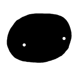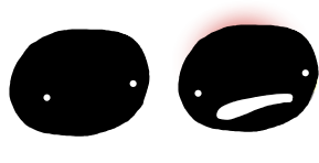 Opheebop appears as a black, limbless figure with two small white dot eyes. During her idle animations, she occasionally twitches, turning her lower body white and revealing a large, cheerful, smiling white mouth below her eyes for a brief period of time.