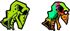Parasite is a greenish-yellow blob with a face resembling a deer skull latching onto Brightside's brain, that changes different colors whenever they move: Black with yellow accents for up, green for left, red for right, and blue for down, to go along kind of with Brightside's mask changing and personalities.
