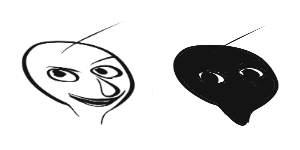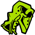 When he has his mask on after Saving Face, he stands up, sporting a yellow mask with a wide, toothless grin, his hair turns the same shade of yellow, his feet are coated in a yellowish ooze and take on a more reptilian-like appearance, and his hands have the same ooze slithering up his wrists, while holding a knife in his right hand. During his different arrow animations, his mask changes. These include a pink mask that makes him all flustered, a green one which makes him dizzy and sick, while almost dropping the knife in the process, a red one makes him look angry or agitated while swinging the knife, and a black one which makes him appear to have a breakdown.