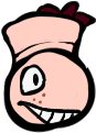 Brightside, without his mask, looks like your run-of-the-mill teenager: blonde hair, grey eyes, and his right eye is obscured by shadow. He wears a baggy grey sweatshirt, black pants, a necklace with a yellow face with x's for eyes (possibly a reference to the Nirvana logo), and pink-and-grey striped socks.