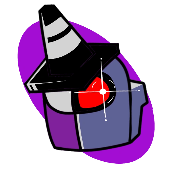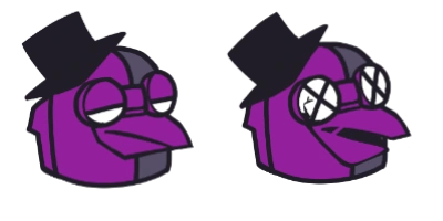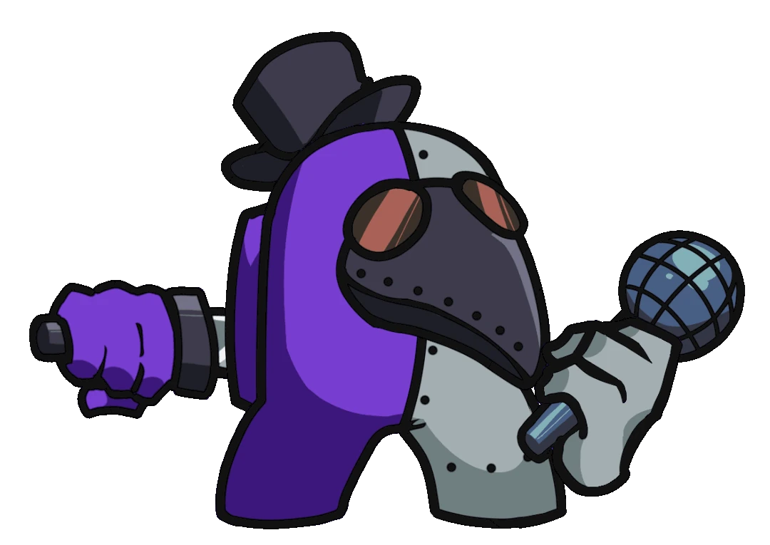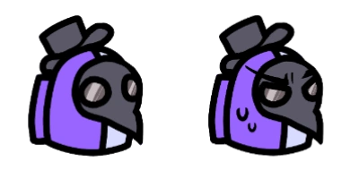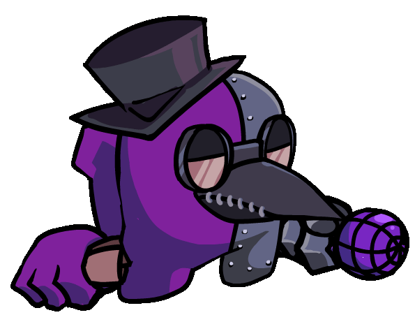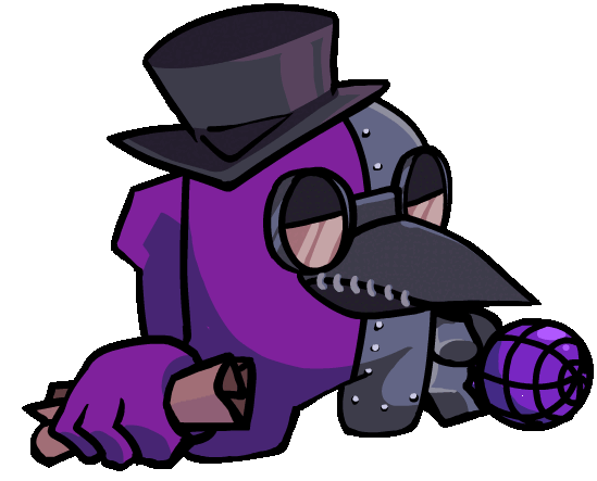 Purple is a cyborg crewpostor with a black bowler hat. Previously he had always worn a beak mask to cover his face. Since meeting Black, he now wears a black cone, which he believes is a symbol of the strong.