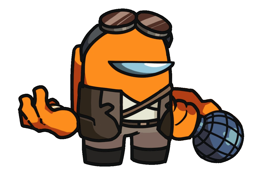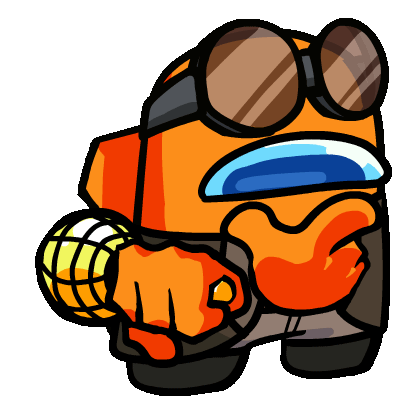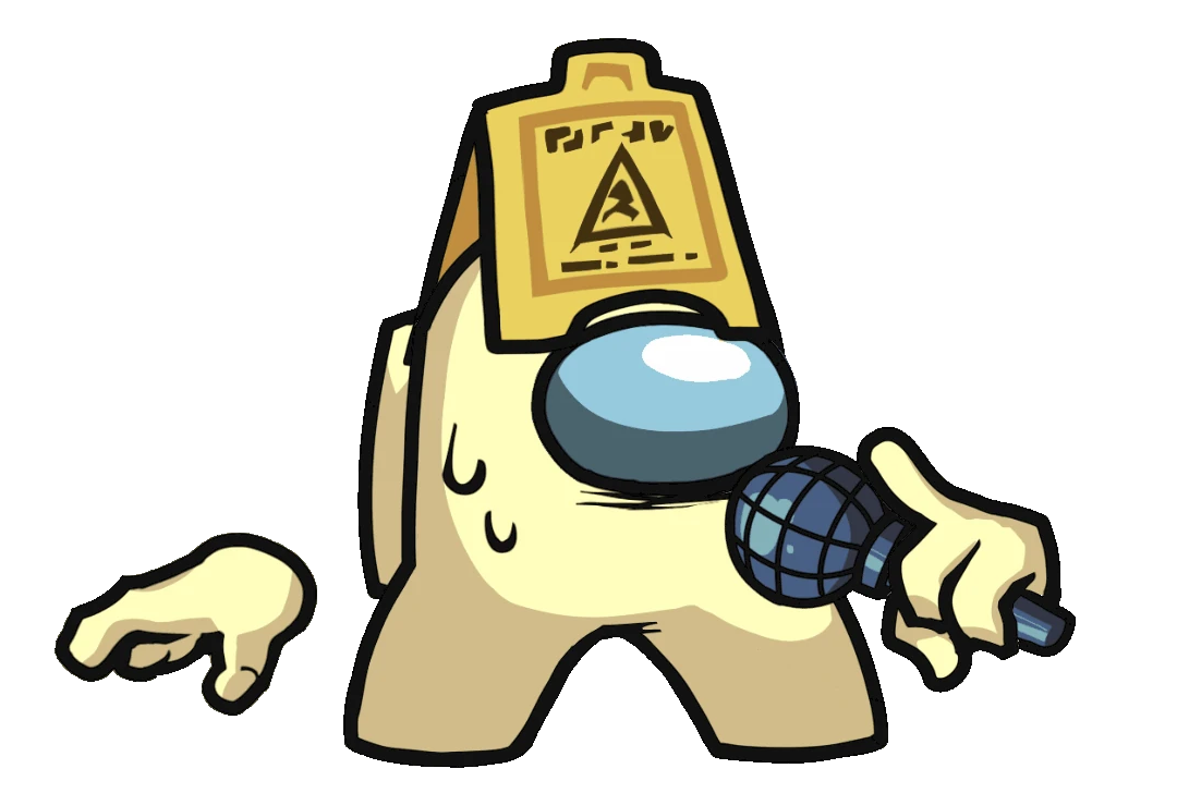 He is an engineer at Among Us with a rustic beware of slippery floors sign on his head. He often looks nervous.